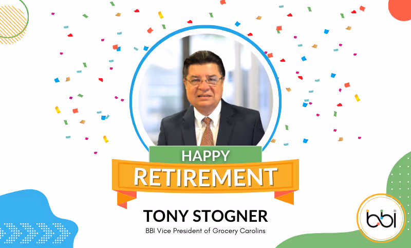 BBI announces the retirement of Tony Stogner, Vice President of Carolinas Grocery, effective December 31, 2024.