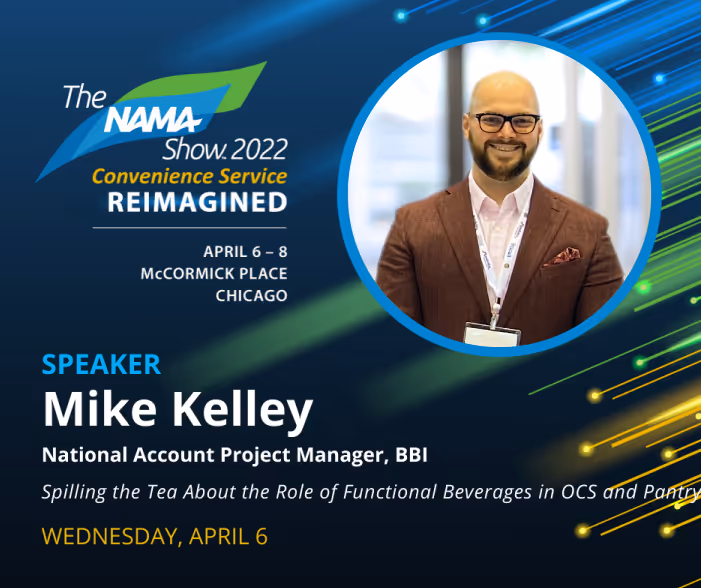 Our National Accounts Project Manager for Vending, Mike Kelley, was a guest speaker in the – Spilling the Tea About the Role of Functional Beverages in OCS and Pantry session. He presented alongside Ed Holloran, President of Coffee Distributing Corporation, and Kristin Overstreet, the National Account Manager for Away-From-Home Twinings North America, and discussed functional beverages vs. more traditional/mainstream beverages. The cost for customer purchase than traditional beverage options, and distribution, current challenges for functional beverages.
