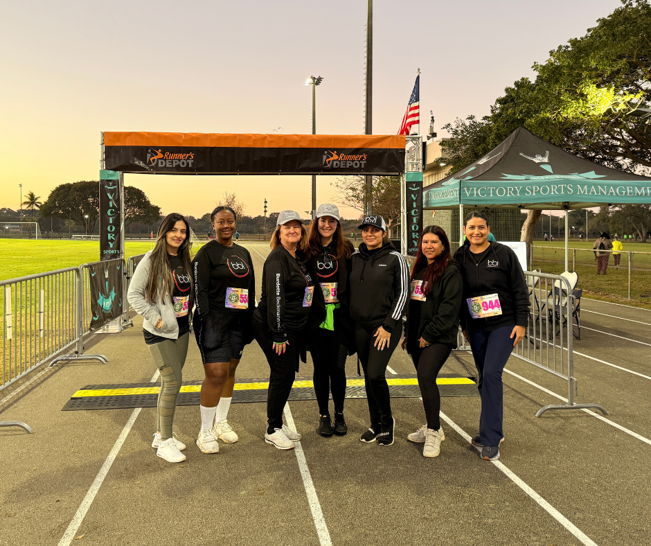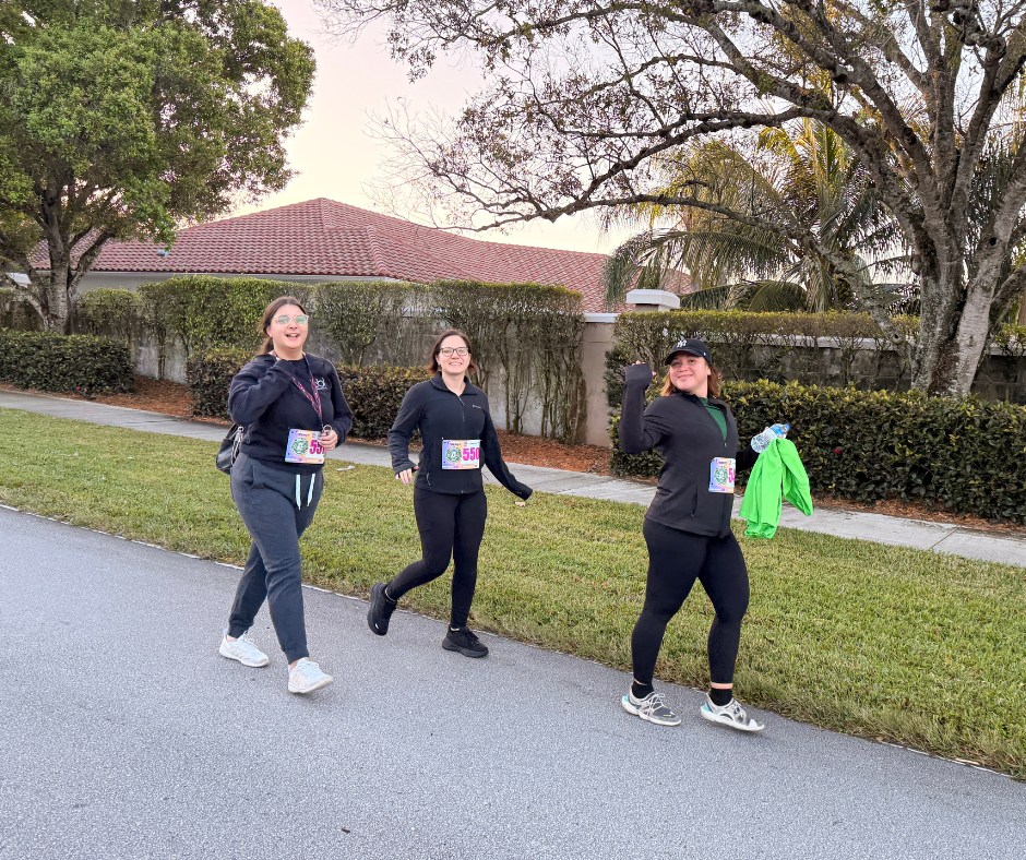 Our Team ran and walked the 5K, navigating a flat, fast course through the tree-lined streets of Plantation, including a scenic loop around Central Park’s lake and a victory finish on the track. Before the race, the team captured a group photo, marking the perfect start to a morning of teamwork. At the finish line, participants received medals, followed by post-race festivities featuring live music, prizes, food, vendors, family-friendly activities, and a crowd-favorite 400-meter Kids’ Dash.